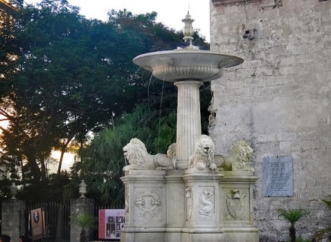 La Fuente de los Leones, uno de los mayores atractivos de la plaza, es de las fuentes habaneras más bellas y de mayor simbolismo, fue traída desde Italia en 1836, donde la esculpió en mármol blanco de Carrara el artista Giuseppe Gaggini, el mismo escultor que hiciera la estatua de la India o de la Noble Habana.