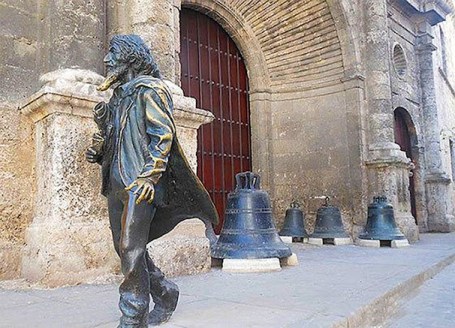 La plaza, inclusiva en sus cánones de Cuidad Maravilla, honra el recuerdo del Caballero de París, con su escultura en bronce, situada frente a la puerta del convento que mira hacia la calle Oficios. El Caballero, personaje famoso y popular que deambuló por las calles de la ciudad hasta su muerte en 1997, mitifica la cuidad con una más de sus muchas leyendas, pues tocar su barba equivale a años de prosperidad, de ahí el brillo que han adquirido sus bronces con los muchos toques.