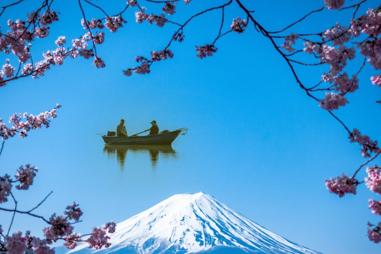 • Abu, sigamos soñando y lleguemos a Japón, para poder contemplar el sagrado y Nevado Monte Fuji, entre cerezos florecidos.