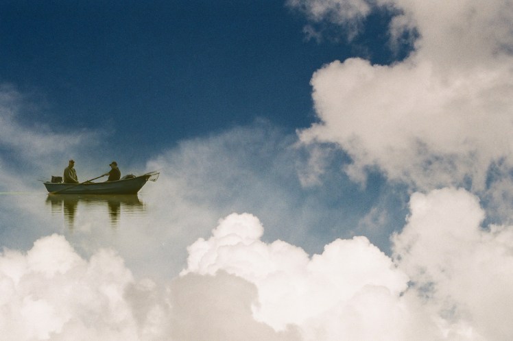 Complacido pequeño príncipe. Ya los pescadores navegan en solitario, a través de un inmenso mar cubierto de azules nubes.