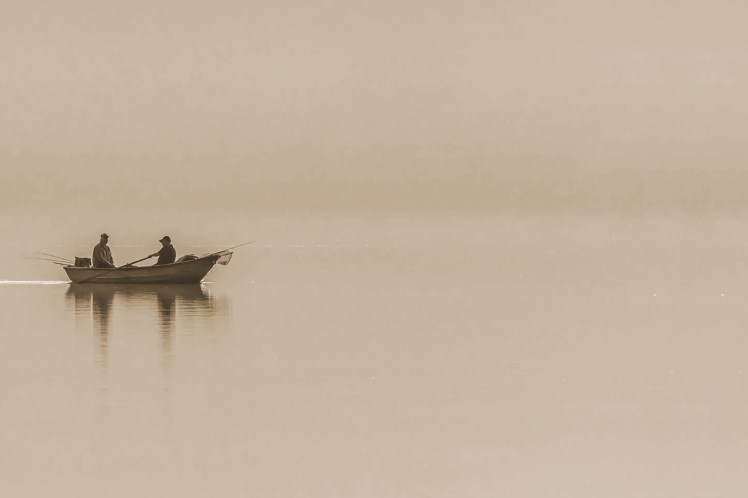 Dylan, este es un pequeño bote, dónde dos hombres buenos salen a pescar, en un apacible mar todo paz y reposo.