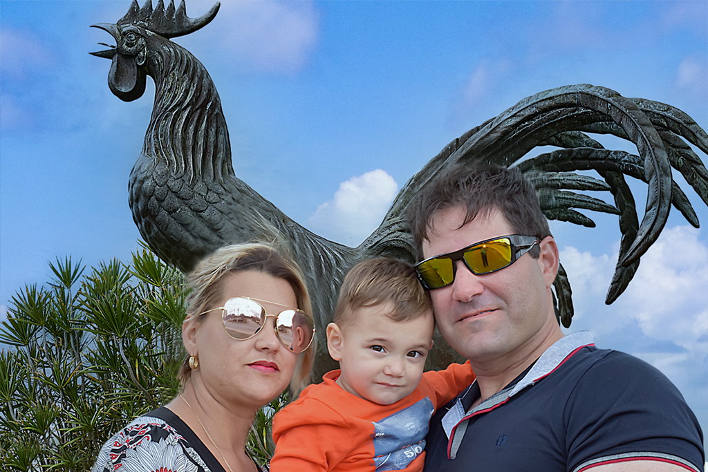 Sin historia no hay pueblo que alcance el decoro, ni obra humana que trascienda más allá de la miopía de los exaltados. Así las cosas y sembrando recuerdos, en la última de mis visitas a la Cuidad del Gallo” hice las fotos familiares que hoy les muestro, donde mi pequeñín no teme a la imponente figura de un gallo imperecedero que tras muchos avatares persiste y comparte engalanado su hidalguía, con hombres de bien multiplicados por miles, que llegan a saludarle desde todos los confines porque lo amán así, emplumado, de grandes crestas y elevados cantos, que alzan al cielo sus desafíos quijotescos.