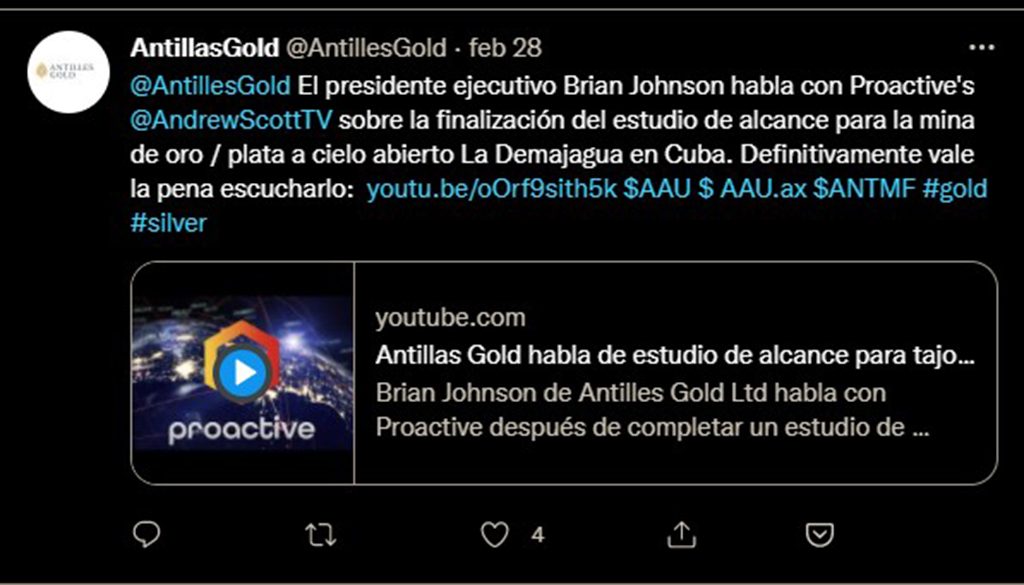 “Antilles Gold” presenta objetivo de producción de oro para Cuba. Jueves, 17 febrero, 2022 .4:05AM. Por Matt Birney