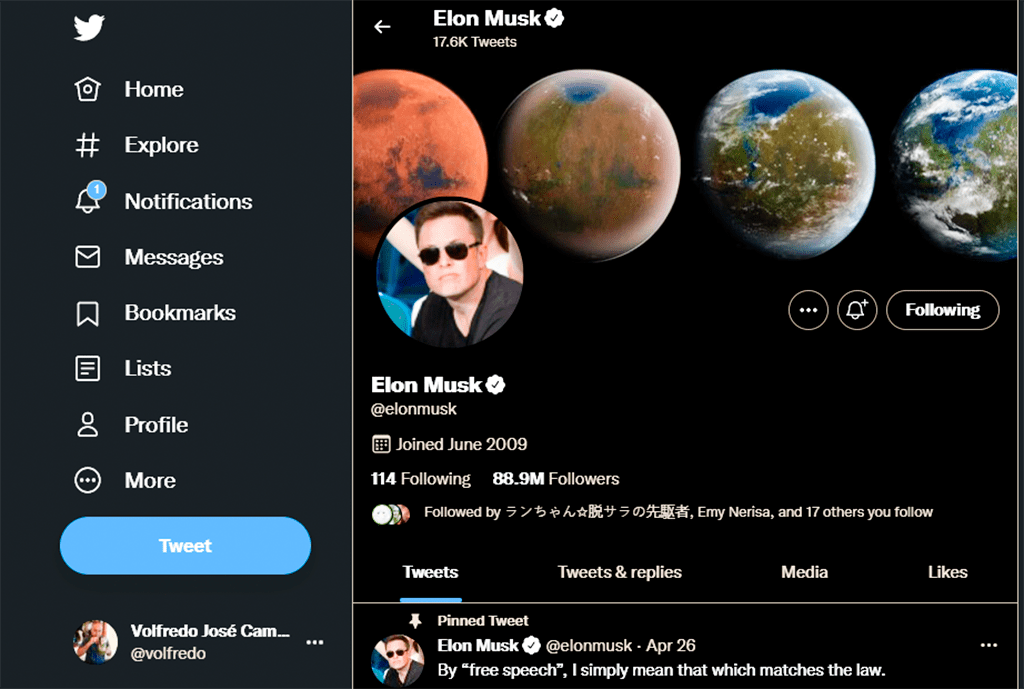 Perfil de Elon Musk en Tweeter.