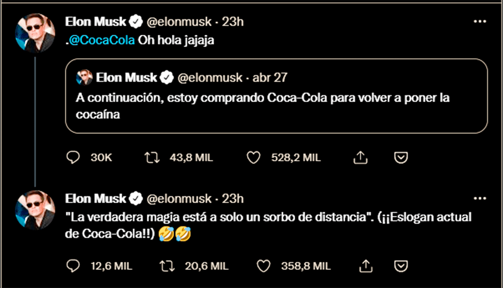 Todo esto me parece razonable, como también el hecho de que el multimillonario, haya prometido en la red, comprar la Coca Cola para volver a añadirle cocaína, según la receta original.