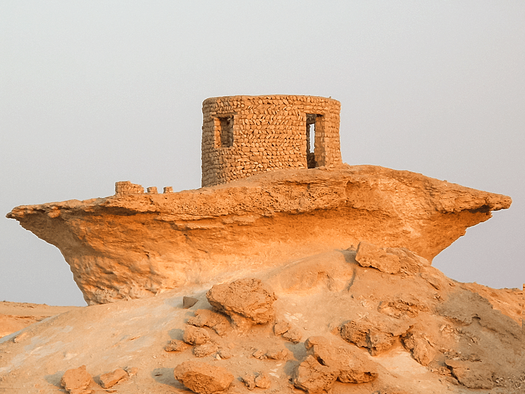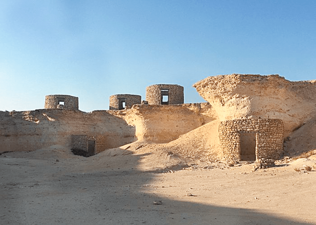 En días posteriores a estos hallazgos, tras las atalayas defensivas y caminando siempre hacia lo desconocido a través de la arena, se hizo presente un poblado en perfecto estado de conservación, un pequeño y auténtico poblado árabe de piedra caliza, que parecía estar deshabitado y aún conservaba algunas palmeras datileras que le circundaban y le hacían lucir esplendido en medio de su soledad.