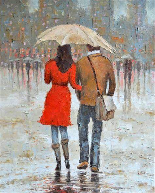 Así puedes apreciar; mientras transitan las calles a apurados pasos, parejas de adolescentes que aprovechan la lluvia, para caminar unidos bajo la intimidad de los paraguas que les cobijan, mientras que otros esconden, tras el velo encubridor de afortunadas sombrillas, la intimidad de un beso.