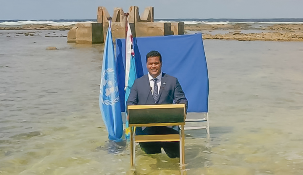 En su discurso en Conferencia de las Naciones Unidas sobre el Cambio Climático (COP 26) en Glasgow, Simon Kofe, ministro de Relaciones Exteriores de Tuvalu, una nación isleña del Pacífico, vestido de traje y frente a un atril, se sumergió en el mar para demostrar cómo el aumento del nivel de los océanos y la … Continuar leyendo Un fuerte aplauso para Simon Kofe.