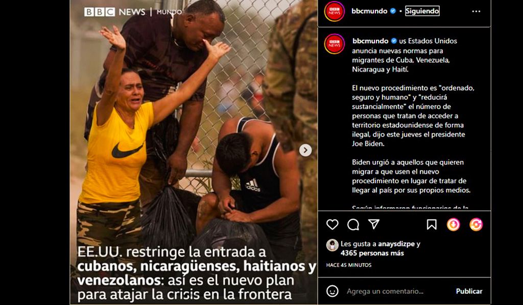 Estados Unidos permitirá la entrada cada mes de hasta 30 000 migrantes de Cuba, Haití, Nicaragua y Venezuela, pero endurecerá las restricciones, ya aplicadas con la llegada de la pandemia de covid-19, para aquellos que intenten cruzar la frontera con México sin la documentación necesaria.