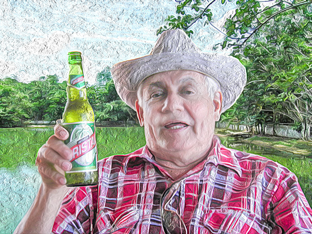Fue así que la imagen del amigo Darío, sonriente y cerveza cristal en mano, surgió de entre sueños con la cabeza cubierta por sombrero de alas anchas y pasó a situarse por delante de una verde arboleda que reflejaba sobre una laguna. Colores primarios, azul celeste, verde, camisa a rayas y cuadros gruesos, rojos y brillantes…