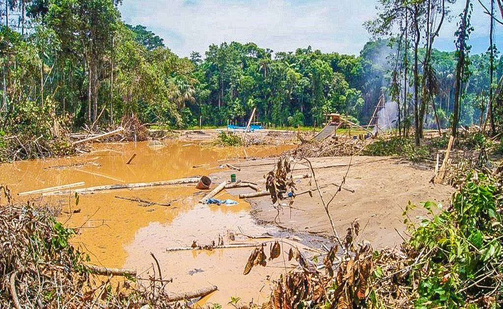 La minería ilegal acurre a diario en toda la gran cuenca del Amazonas, que es tan grande como Europa: primero se quema y tala el bosque para permitir la llegada de la maquinaria pesada, luego se comienza a cavar y para hacer visible y aglutinar el oro se baña la tierra con toneladas de metales pesados (mercurio, cianuro, etc), los vertimientos van a los ríos y envenenan corriente abajo los peces y toda la cadena alimentaria que se desprende de ella, el último eslabón es el hombre. Eso, no importa a nadie.