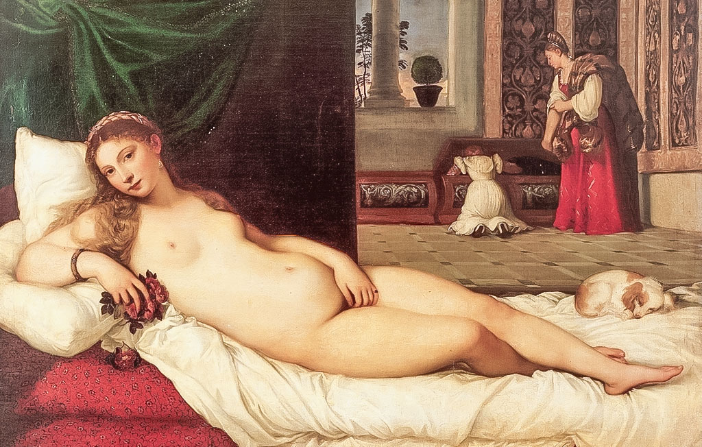 “La Venus de Urbino” es una obra maestra posterior a Giorgione, de su gran discípulo y seguidor, el pintor renacentista Tiziano, realizada en 1538 por encargo del duque de Urbino Guidobaldo. Se trata de una pintura al óleo sobre lienzo que mide 119 x 165 cm y que se conserva en la Galería de los Uffizi en Florencia.