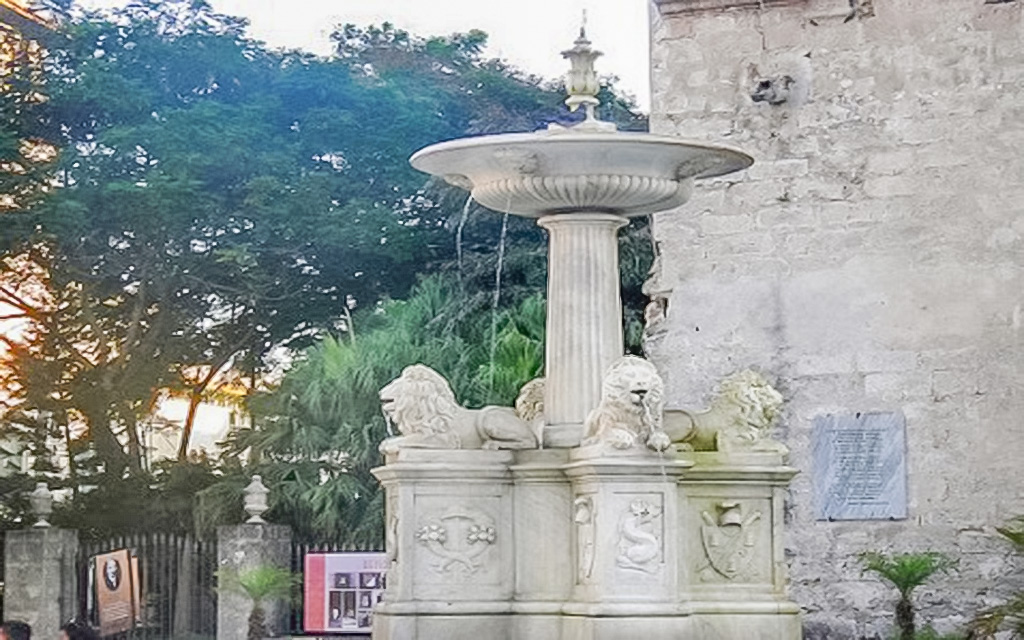 La Fuente de los Leones, uno de los mayores atractivos de la Plaza de San Francisco de Asís. Importada desde Italia en 1836.