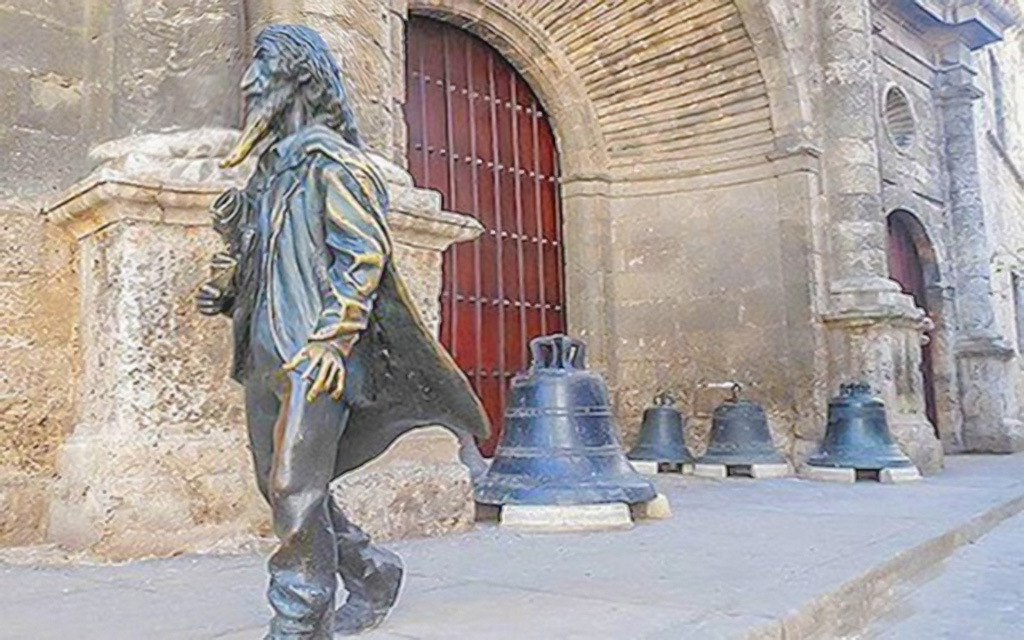 Estatua del Caballero de París, situada a la entrada de la Basílica Menor de San Francisco de Asís.