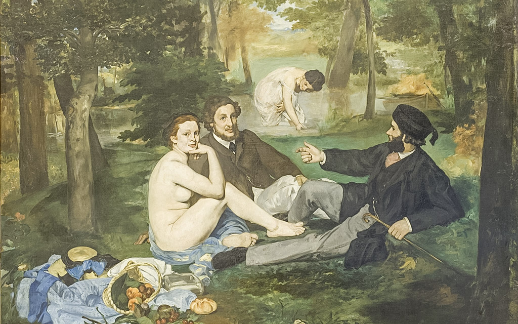“El almuerzo sobre la hierba” es una obra que muestra a dos hombres y una mujer desnuda en un bosque, cerca de Argenteuil, Francia. La obra se caracteriza por su uso del color y la luz, y por su estilo único que combina elementos del impresionismo y del realismo. La yuxtaposición de un desnudo femenino con caballeros completamente vestidos suscitó controversia cuando la obra se mostró por vez primera en el Salón de París, razón por la cual la participación de la pintura fue denegada y solo le fue permitido exponerse en el recién constituido Salón de los Rechazados (Salon des Refusés) en 1863, luego de su rechazado oficial. La pintura fue el lienzo «más irritante y controvertido» en ambos salones, donde se consideró vulgar el que una mujer estuviera desnuda junto a jóvenes vestidos. A esta incisiva crítica debe añadirse el hecho, de numerosos críticos que rechazaron la modernidad del estilo, desde el punto de vista cromático y compositivo.