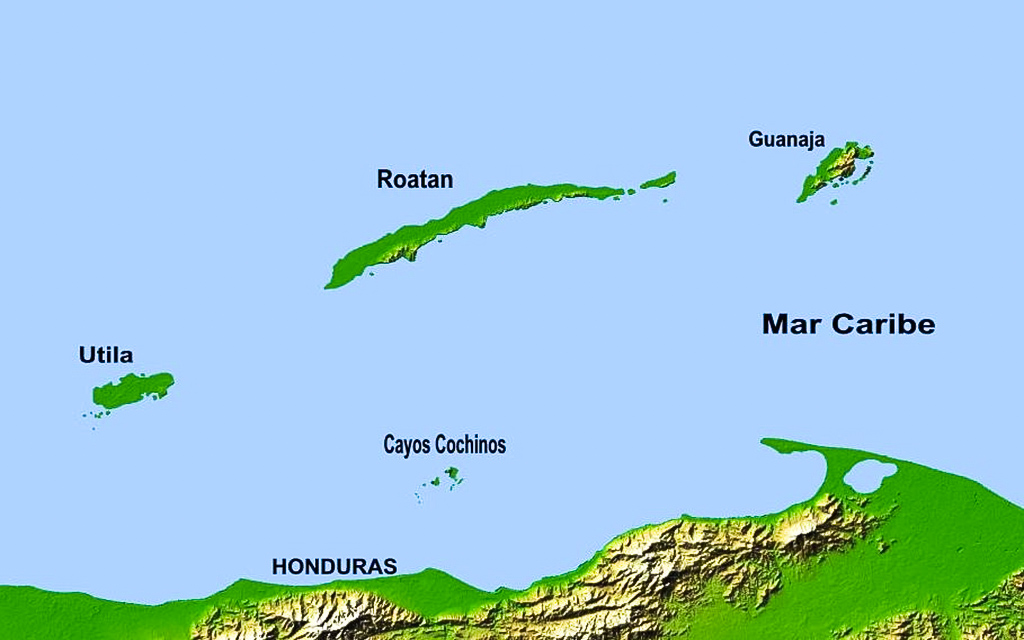 El archipiélago de Islas de la Bahía, incluye cuatro pequeñas islas: Roatán, Utila, Guanaja y los Cayos Cochinos, hogar de varios asentamientos a lo largo de la historia. Originalmente, estas islas estaban pobladas por los mayas y al desaparecer misteriosamente estos, en tiempos precolombinos, fue ocupada por los indios payas. En el siglo XVI, los conquistadores españoles exploraron el sitio; para ser con posteridad desplazados por piratas ingleses.