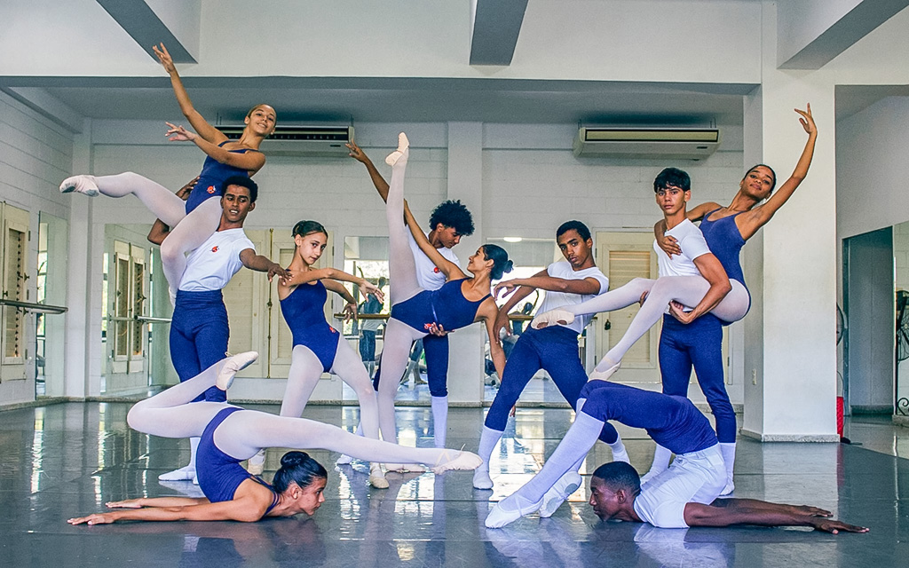 Futuras estrellas de la Compañía Acosta Danza durante un ensayo.