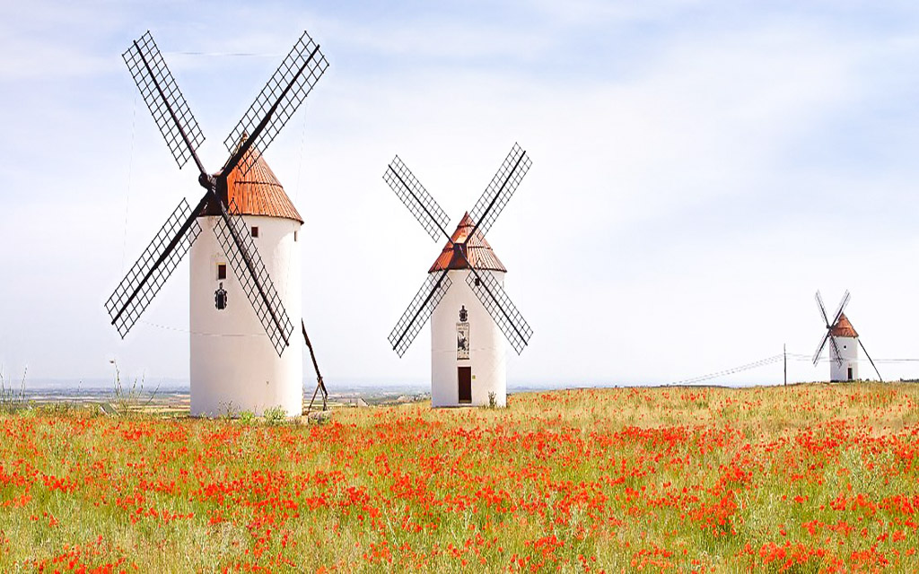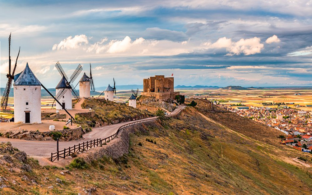 Vista de los molinos de Mota del Cuervo en Cuenca, Castilla-La Mancha © Igor Plotnikov