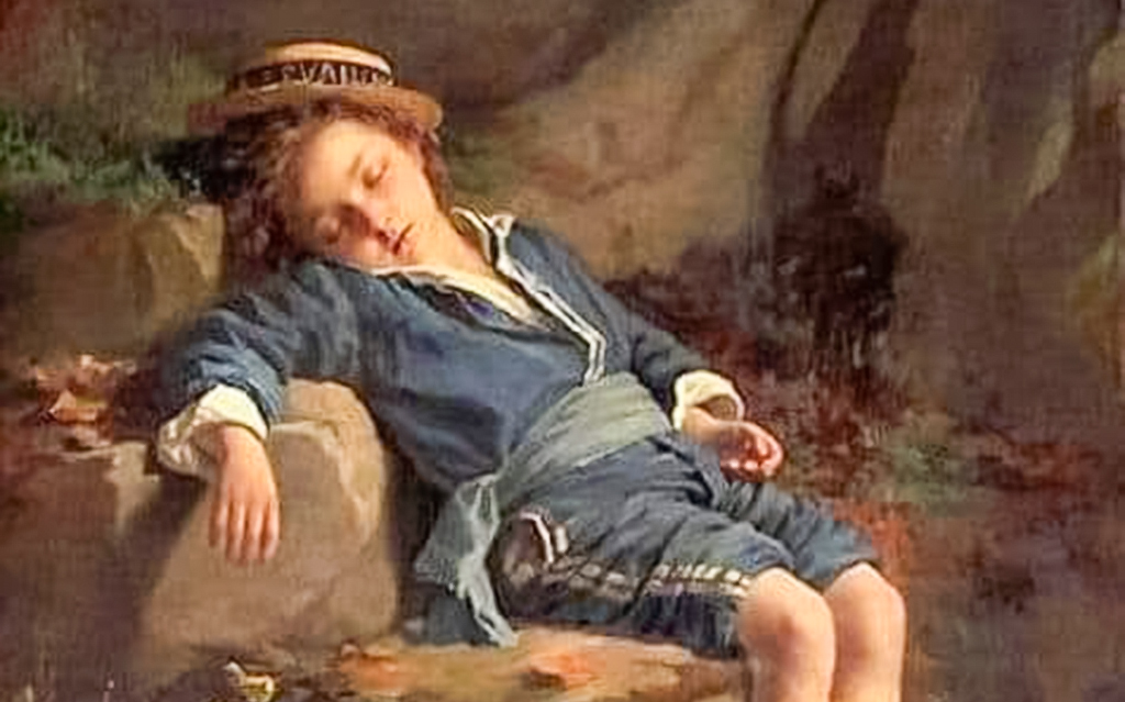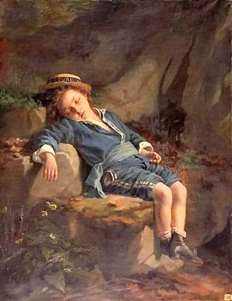 Es una obra que captura la serenidad y la inocencia de la infancia. En esta pintura, la artista presenta a un niño pequeño profundamente dormido, envuelto en una atmósfera de paz y tranquilidad. La luz suave y los tonos cálidos utilizados en la obra contribuyen a crear una sensación de calma y seguridad.