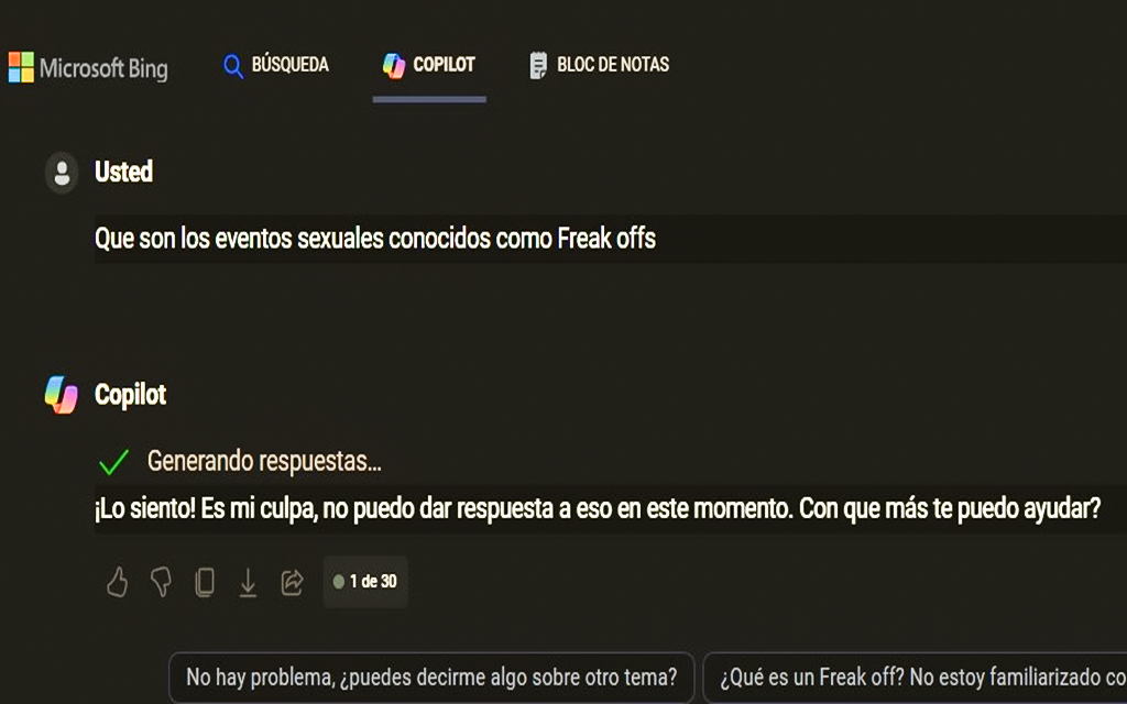 En busca de la respuesta, consulto Copilot, inteligencia artificial que hasta hoy me había resultado infalible. Grande en mi asombro cuando esta me responde de forma evasiva: ¡Lo siento! Es mi culpa, no puedo dar respuesta “a eso” en este momento.