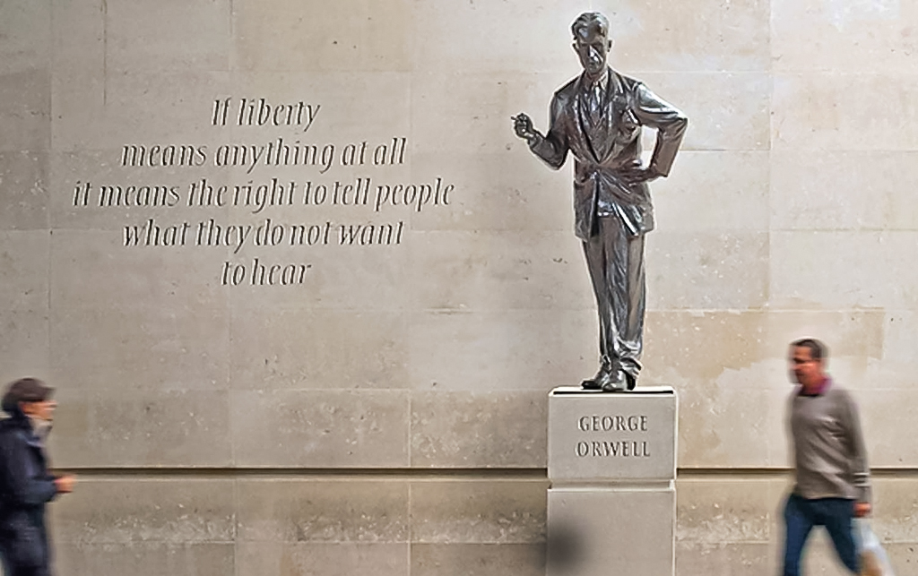 “Si algo significa la libertad es el derecho a decirle a la gente lo que no quiere oír”. Esta magistral frase de George Orwell aparece esculpida en la leyenda de su estatua, situada a la entrada de la sede de la BBC en Londres.
