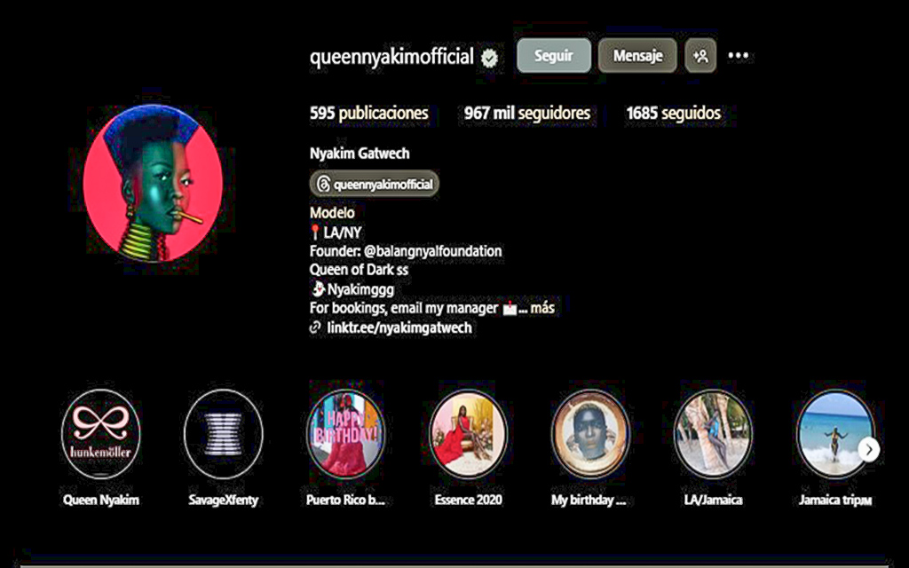 Hoy, Nyakim Gatwech continúa su ascenso imparable. Ha colaborado con marcas de renombre, desfilado en eventos de alta costura y trabajado con fotógrafos que han sabido capturar la majestuosidad de su presencia. Pero más allá del glamour de las luces y los reflectores, su mayor legado es el cambio cultural que está impulsando. La Reina de la Oscuridad no solo brilla en las pasarelas; brilla en el corazón de quienes ven en ella una nueva posibilidad, una prueba de que la belleza es tan infinita como el espectro de colores que la humanidad puede abrazar.