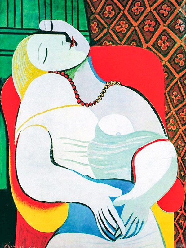 Luego vino el tiempo del surrealismo, esa época donde los sueños y los demonios personales se subieron al lienzo con una desfachatez onírica. Picasso nunca fue estrictamente un surrealista —no se dejó domesticar por ninguna escuela—, pero absorbió de ellos la licencia para distorsionar la figura humana, para explorar el deseo y el subconsciente, para otorgarle a la pintura una dimensión psíquica. Obras como El sueño o Mujer con reloj (1932); revelan una sensibilidad que es a la vez íntima y desgarradora, donde el rostro de una amante puede desdoblarse en fragmentos que lloran, gimen o se desvanecen.