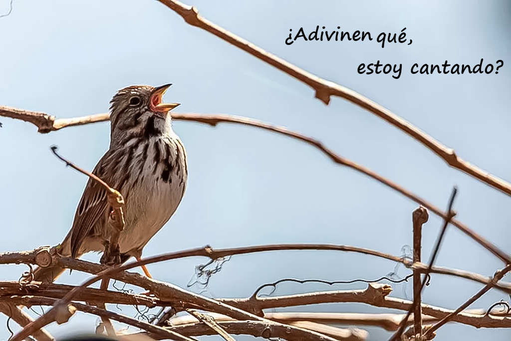 Un pájaro se posa sobre las ramas secas como quien se aferra a lo que queda de la nada. Abre el pico y canta. No sabemos qué melodía entona, pero sí sabemos que canta a pleno trino. Y canta con fuerza, como si su voz pudiera encender bombillos, hervir el arroz, llenar tanques elevados y … Continuar leyendo ¿Adivinen qué, estoy cantando?