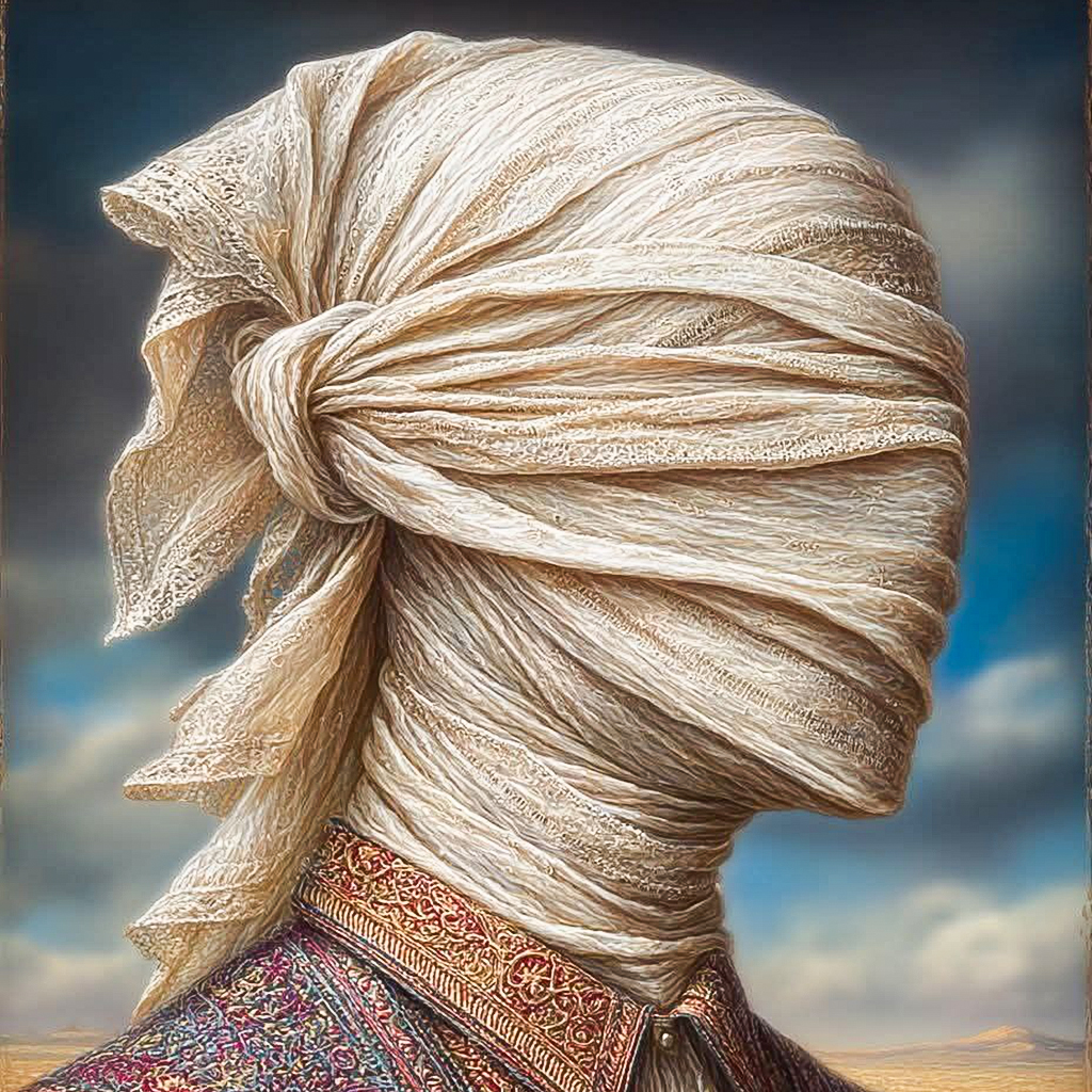 Sin embargo, la figura permanece erguida. Aunque silenciada, aunque invisible, la dignidad late bajo la tela. La esperanza respira entre las grietas, recordando que la humanidad no se rinde.