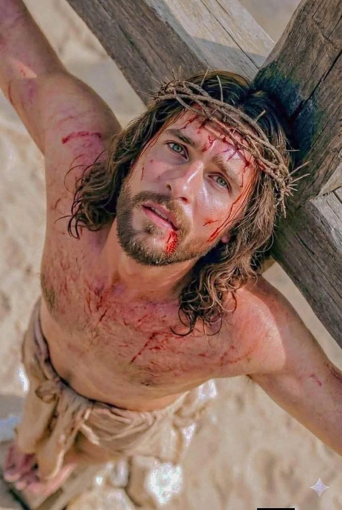 Hay imágenes que no se limitan a ser observadas: nos interpelan. Esta escena —Jesús clavado a una cruz, coronado de espinas, con el rostro atravesado por el dolor y la mirada elevada hacia algo que no vemos— pertenece a ese territorio donde lo humano y lo simbólico se entrelazan. La composición, de un realismo casi táctil, nos sitúa frente a un cuerpo herido, vulnerable, atravesado por la violencia, pero también sostenido por una extraña dignidad.